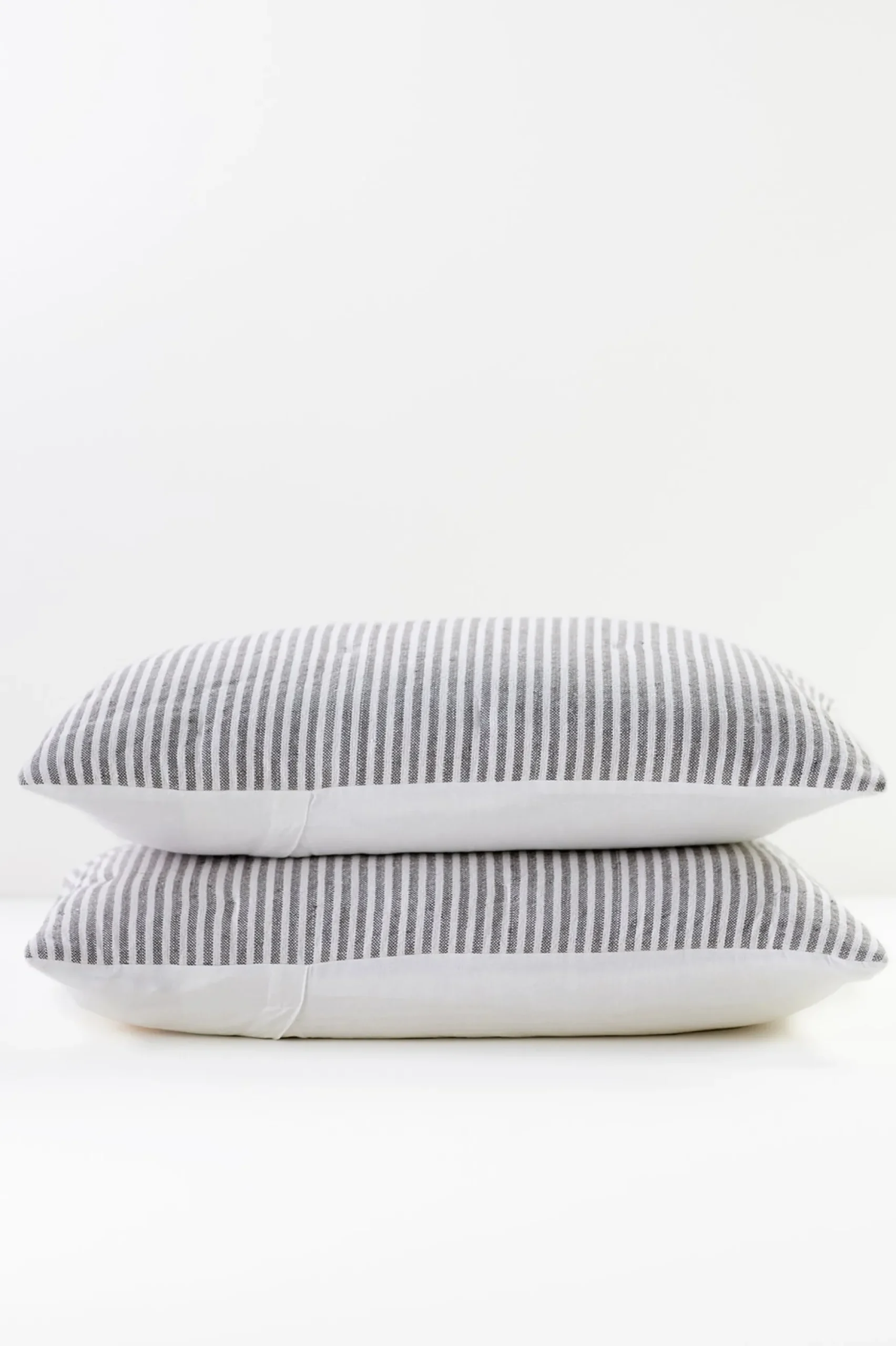 Classic, ticking striped shams are an effortless way to introduce pattern to your bedroom. It blends beautifully with so many styles: classic florals, breezy coastal pieces, or rugged solids. Woven of breathable cotton and linen, the sturdy design closes with fabric ties.