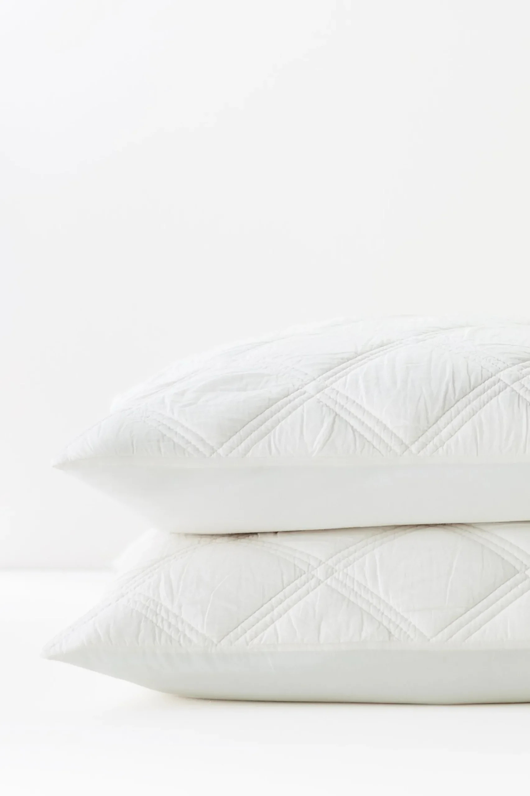 Tonal detailing is a beautiful way to add pattern without adding busyness to your most serene space. Beautifully lightweight cotton voile sham is triple embroidery quilted to create a subtle and lovely diamond effect. It’s a delightfully soft touch (in look and feel) for your bed.