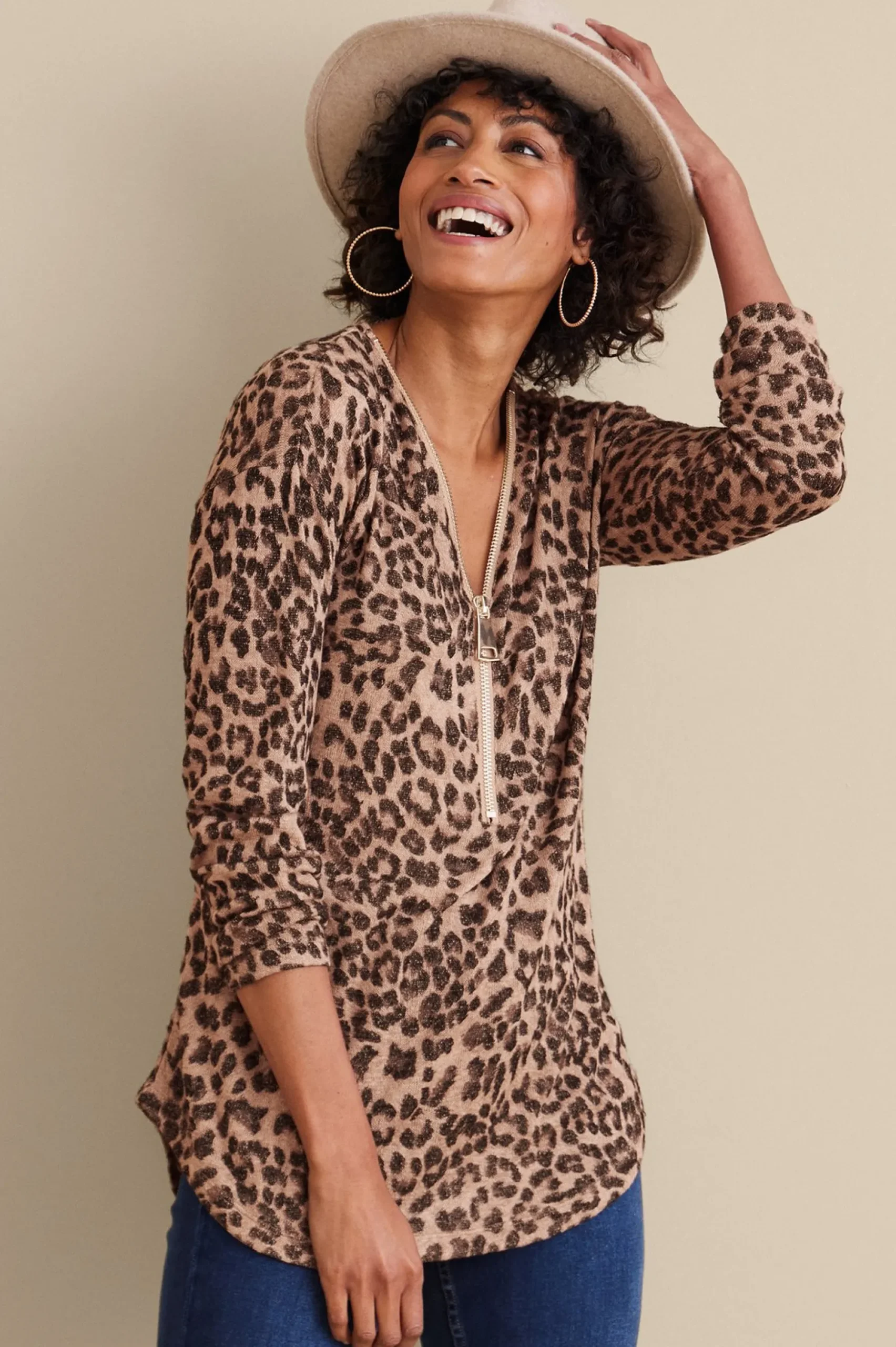 An easy-wearing sweater with max zip appeal. An oversized gold zipper pull adds a flash of on-trend shine to the soft, textural slub jersey knit. In a tunic length, it’s ready to pair with jeans and booties or leggings and sneaks.