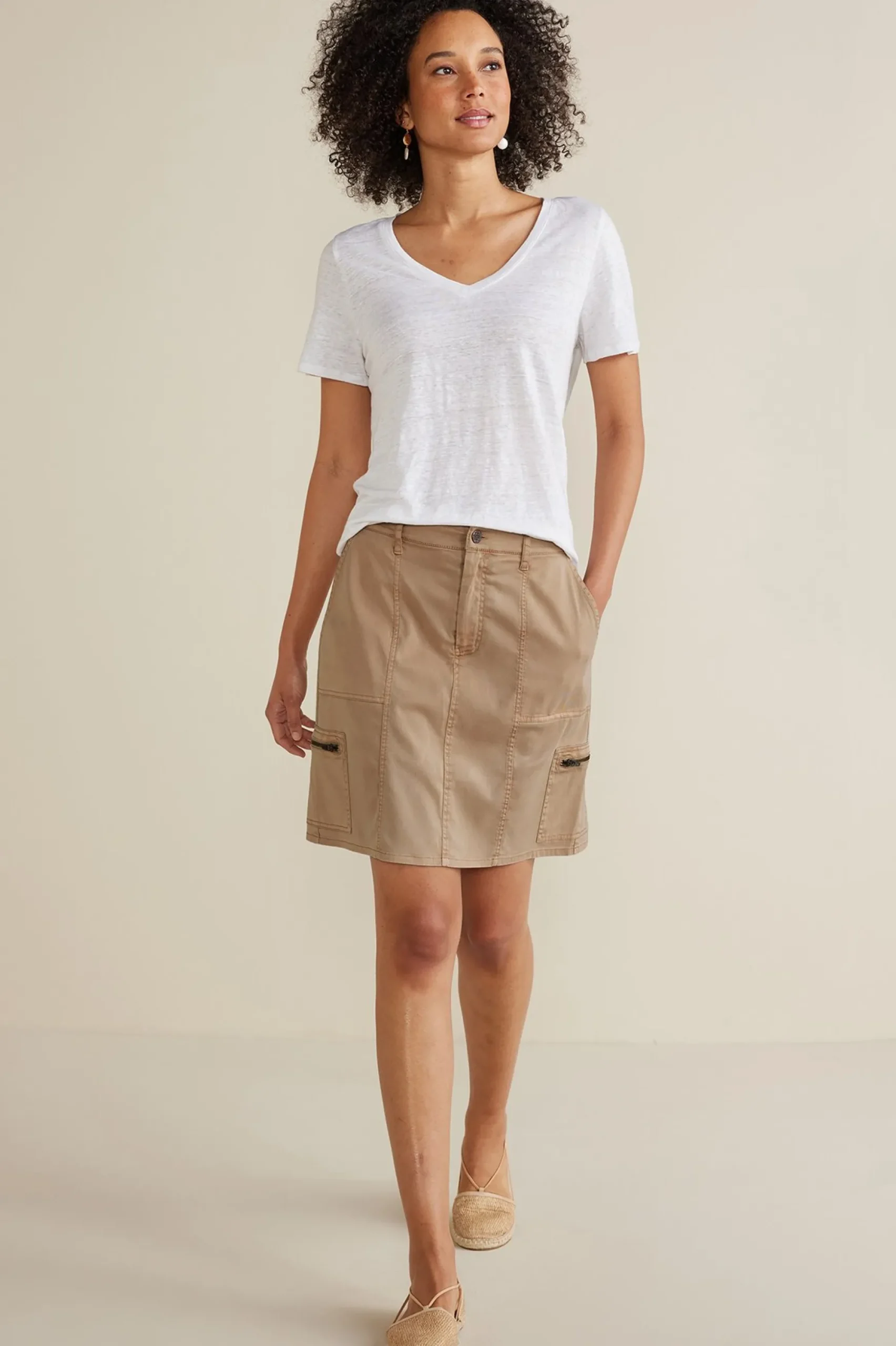 Try out the season’s cargo trend with this stretch twill skort that’s trimmed with functional zip pockets. Underneath, you’ll find built-in shorts made from a soft jersey knit.